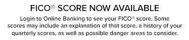 FICO score now available - Login to online banking to see your score.